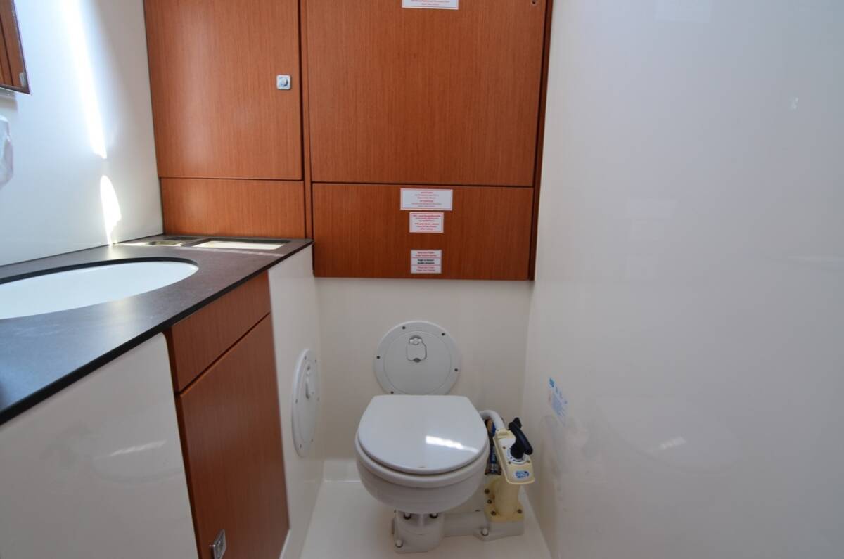 - Esnek Konaklama: 4 kabin, 8 yatak ve 3 duşlu tuvalet ile 8 kişiye kadar konaklama imkanı. Baş kamaradaki esnek bölme sistemi sayesinde kabin düzenini ihtiyacınıza göre ayarlayabilirsiniz.