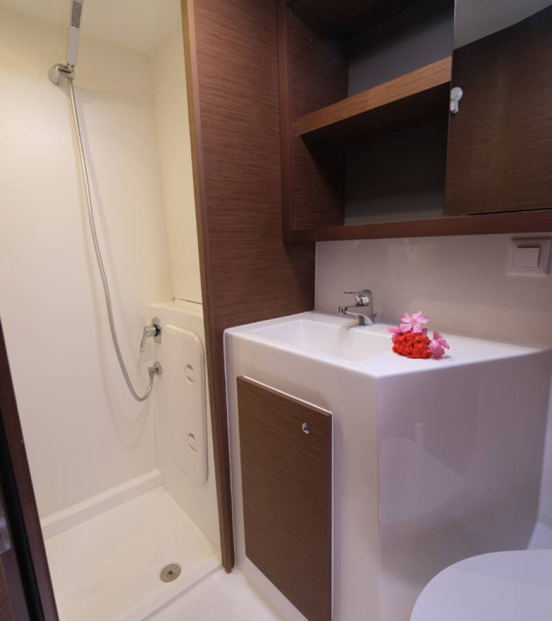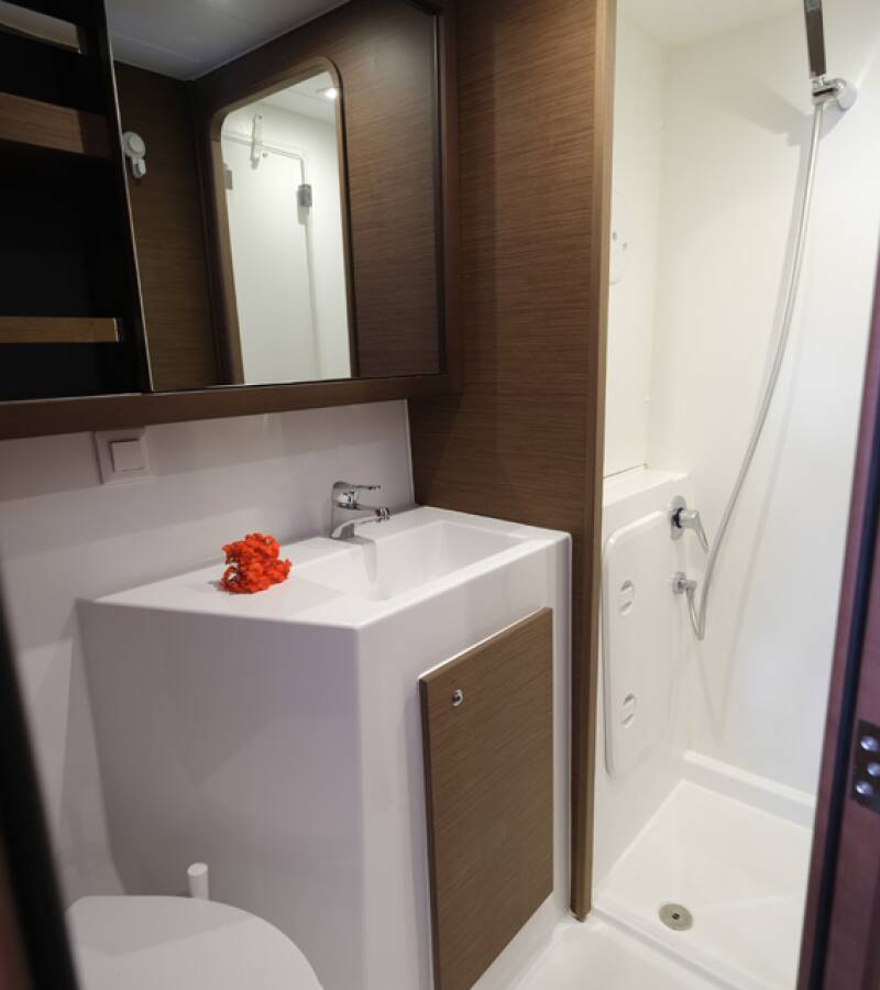 - Saray Konforunda Konaklama: Dört geniş ve aydınlık kabinin her birinin kendine özel tuvaleti ve duşu bulunur. Bu 4+2 kabin düzeni, 10 kişiye kadar olan gruplar için mahremiyet ve konforu bir arada sunar. Sabahları dalga sesleriyle uyanıp, kendi özel banyonuzun rahatlığını yaşayın.